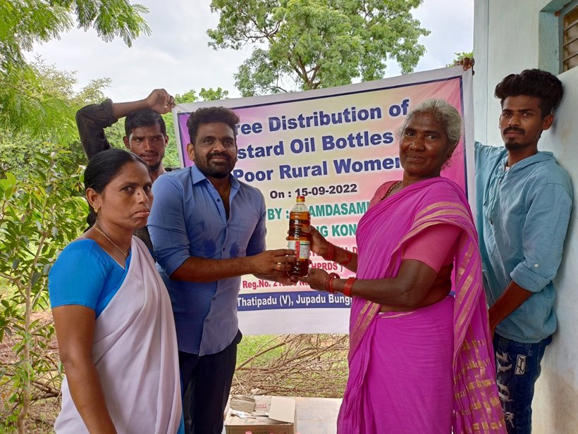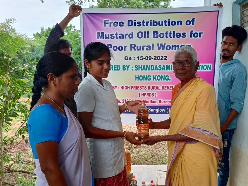 DISTRIBUTION OF MUSTARD OIL BOTTLES FOR POOR RURAL WOMENS