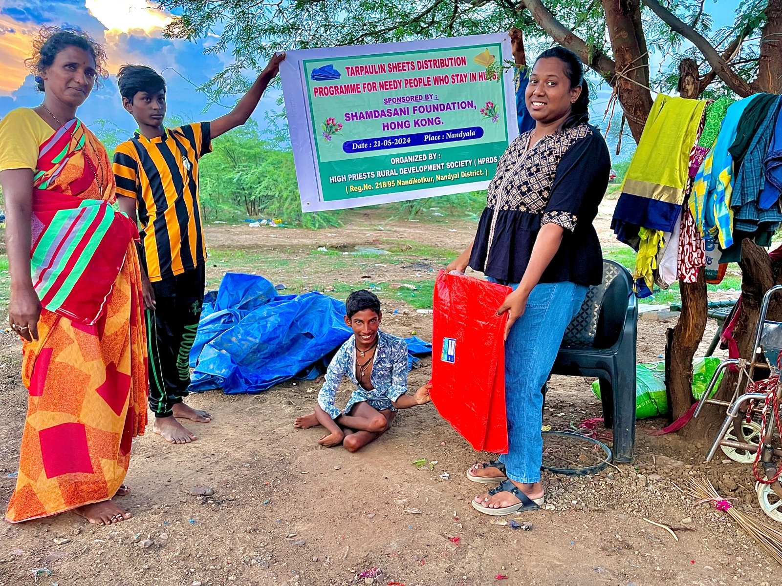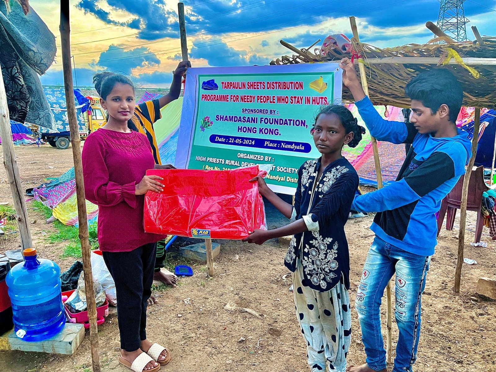 TARPAULIN SHEETS DISTRIBUTION FOR NEEDY PEOPLE WHO STAY IN HUTS